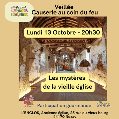Veillée causerie au coin du feu autour des “Mystères de la vieille église” avec ponctuations musicales.