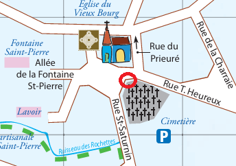 Afin de réparer cette amnésie collective, suite au récent accident de la circulation qui a entraîné l’enlèvement de la plaque apposée à l’angle nord-ouest du mur du cimetière (cercle rouge sur le plan), nous proposons de (re)découvrir le personnage, dans la vie qu’il mène à Nozay dans les décennies précédant la Révolution. Pour qui veut le suivre dans les années suivantes, nous invitons le lecteur à se plonger dans l’ouvrage de Jean Bouteiller1.